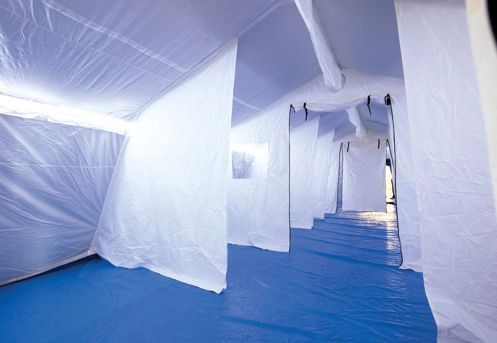Commonwealth EMG Inflatable Decontamination Shelters provide private and safe clean-up after a variety of accidents. A full shower system complete with shower nozzles and hose lines that connect to any standard water line. Openings for pass-through clothing. Built-in LED lighting available.