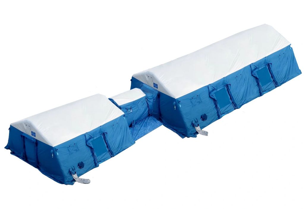 Practical design and durable construction allows shelters to be connected to additional structures while maintaining a weather-tight seal. Inflates in minutes with included blower.